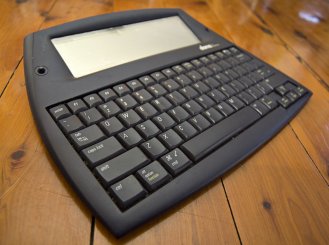 The only reason I’m going on about this is because I love my little Dana.  She has been a faithful companion through the last three years of writing and is still going strong.  A Dana is more sophisticated than a typewriter but more primitive than a laptop.  She’s essentially a keyboard with a small screen (you can only see about five lines of text at a time) and a wonderful USB cable that can plug into your computer and transfer everything you’ve typed from the Dana into a Word document in a matter of seconds.  There’s no internet, no mouse, no pretty graphics, and no problems with overheating.  Plus, the lack of frills means a Dana’s rechargeable battery life is far longer than a laptop’s.  And she’s not nearly as heavy or bulky.  The only downside is that you can’t plug a USB into the Dana and bring up work you did on the computer.  The data is a one-way street, so I generally vomit-type on the Dana, then do the spit-and-polish through the computer.  But it’s a minor drawback, and I still consider it the best $150 I ever spent.