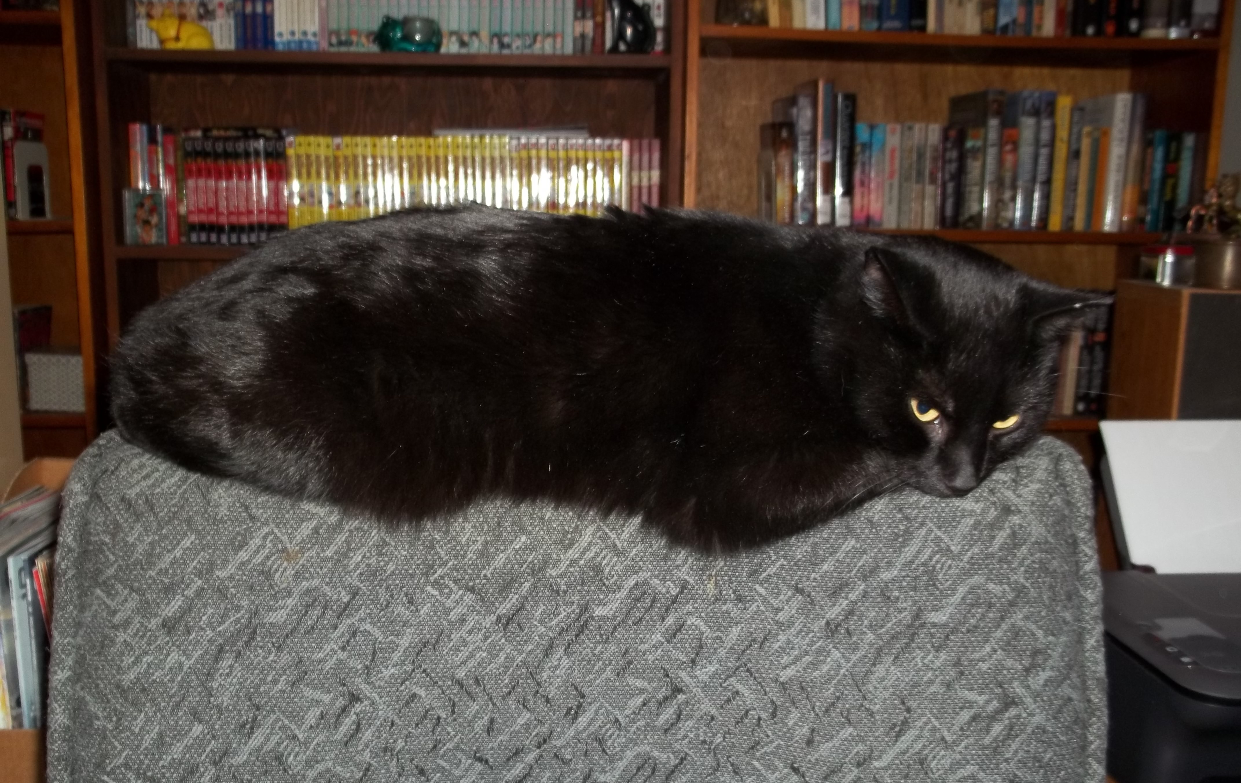 My brother’s cat, Dust Bunny (also known as “Bunny” or “Bun-Bun”), chillin’ to some tunes. (Note: she’s much smaller IRL than this photo might suggest.)
